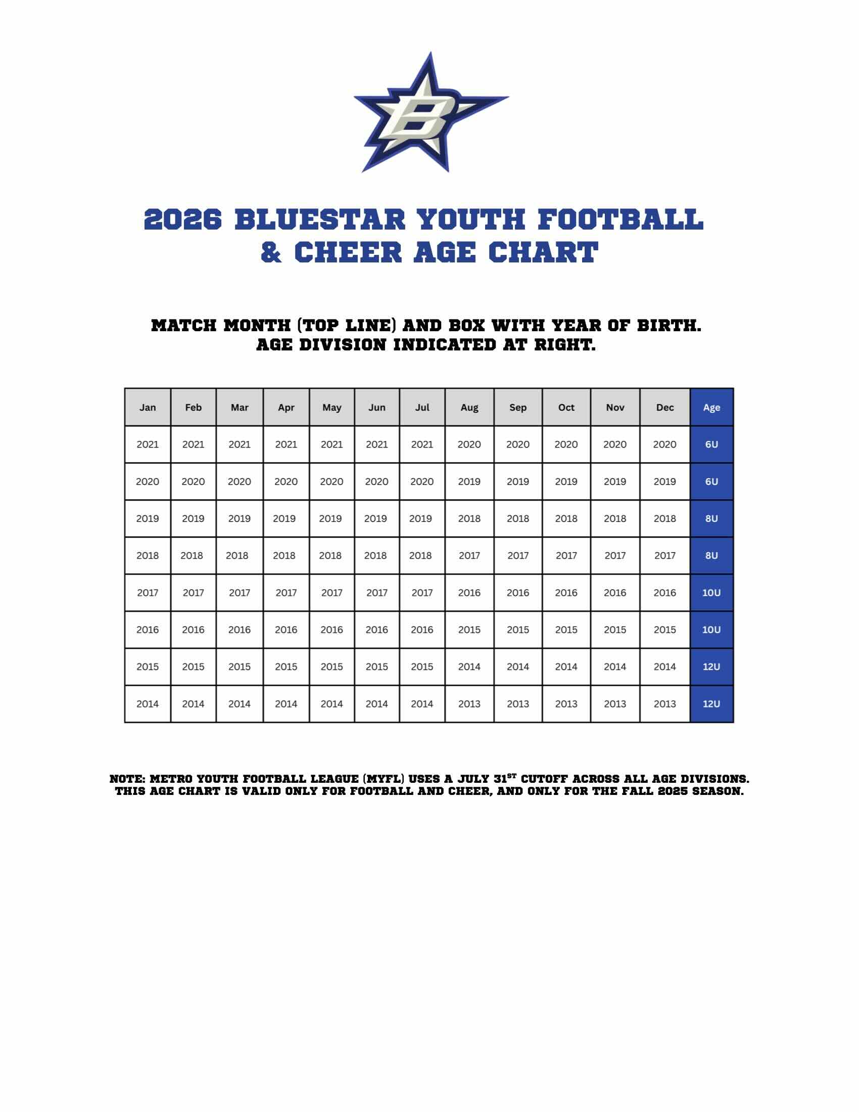 2026 Age Chart